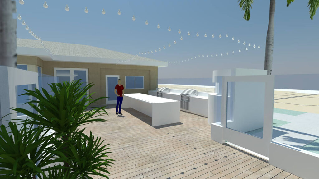 New materials were selected throughout to give the space a luxurious feel. The pool areas feature new pavers, turf areas, and a wood-like ceramic tile at the cabanas and raised deck.